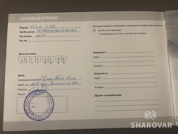 Volvo C30 покупалась и обслуживалась у официального дилера в Украине.
