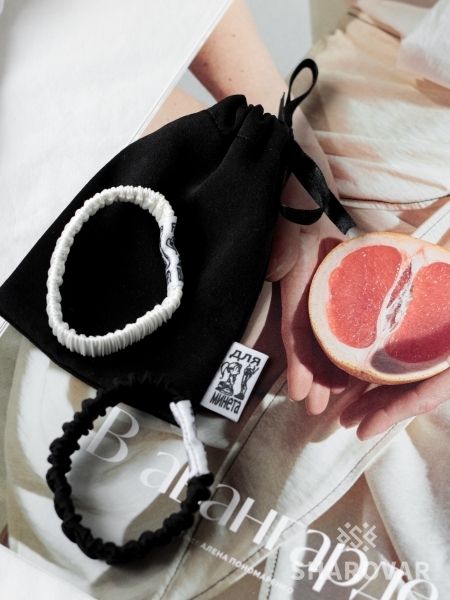 За 400 грн вы получите брендированный мешочек в котором есть белая и черная резинка для волос.