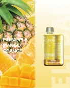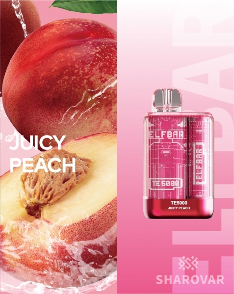 Одноразки Эльф Бар TE5000 выпускаются в небольшом прямоугольном корпусе, сделанном из пластика и металла. Сверху есть специальное сияющее покрытие, которое добавляет устройству оригинальность и необычный вид. Сам девайс прозрачный, что позволяет частично