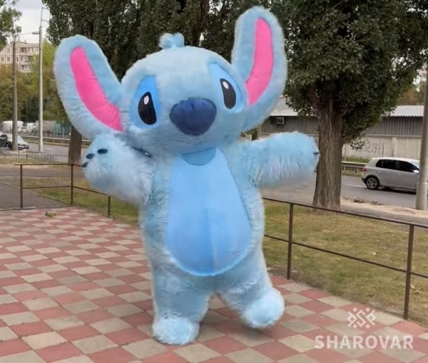 Костюм моментально разрешает почувствовать себя увеличенной версией любимого синего пришельца. Как и Стич, надувной костюм — нечто неземное, любимый персонаж детей появится во всей красе. Пневмокостюм Стич • шевелит ушками • обнимается • бегает, прыгает • играет в игры Надувной двойник маленькой синей собачки погружает в атмосферу сказки и волшебства, заставляет забыть о тревогах, почувствовать себя в безопасности.
