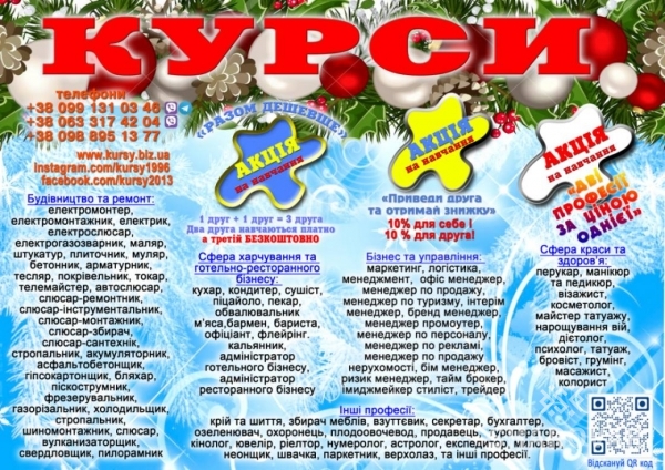 Курси зварник, електрик, слюсар, маляр, токар. бухгалтер