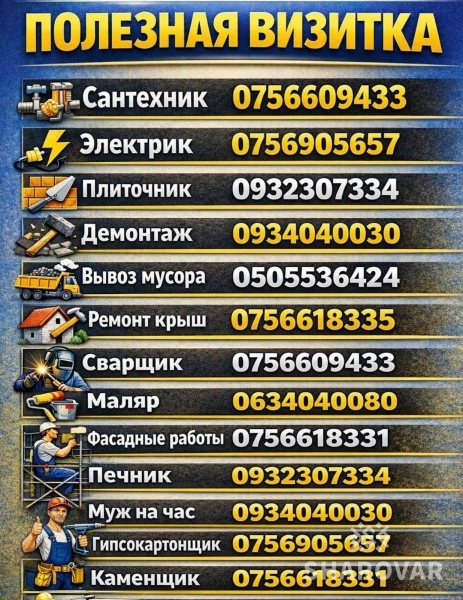 Услуги мастера по мелкому ремонту, сантехника, электрика, монтаж, демонтаж, устранение засора, сборка мебели, установка дверей, установка бытовой техники. Малярые работы, вынос-вывоз строительного мусора, подъем материала. Повесить люстру, починить розетку или смеситель, заменить сантехнику, прибить плинтус или карниз, собрать мебель, покраска, поклейка обоев, линолеума и ламината, откосы, шпатлевка стен и другие виды работ. Работаю сам на себя. Индивидуальный подход к каждому клиенту, надёжность, честность и ответственность. Звоните, буду рад помочь.